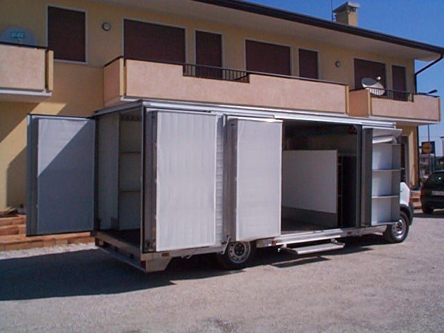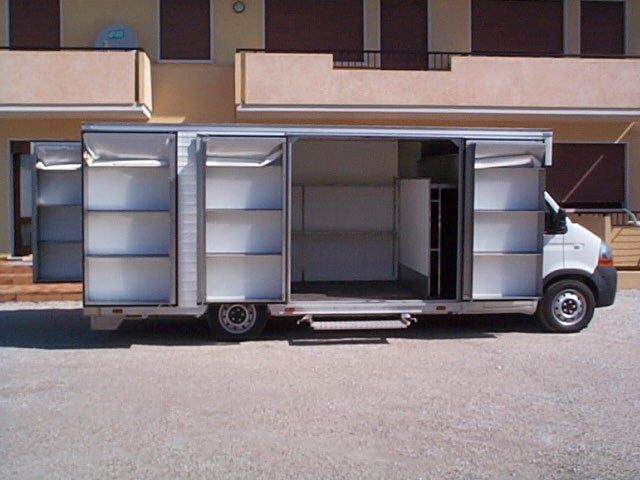 Apertura laterale e posteriore con portelloni ad uso negozio.