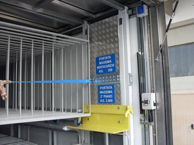 Struttura modulare interna dedicata al carico di carrelli sviluppato su due piani utilizzando un montacarichi