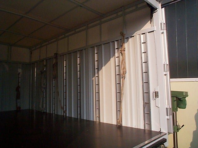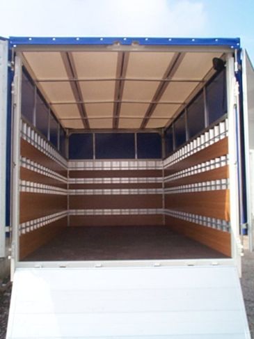 Rivestimento interno pareti in pannelli in legno overlay tanganica. Protezione inferiore pareti interne in lamiera zincata altezza 300mm. Coppia porte posteriori a due battenti con chiusure incassate od esterne inox.