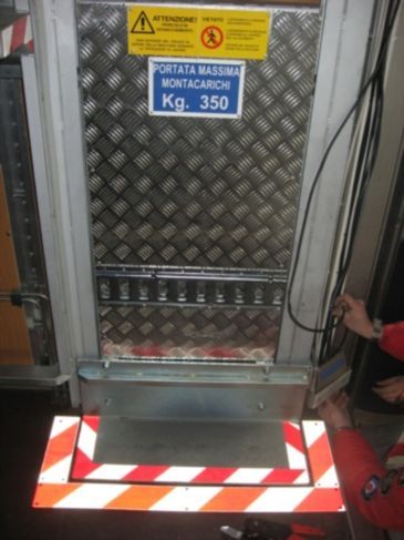 Sponda montacarichi posteriore per carico/scarico carrelli.