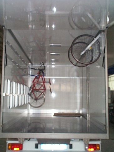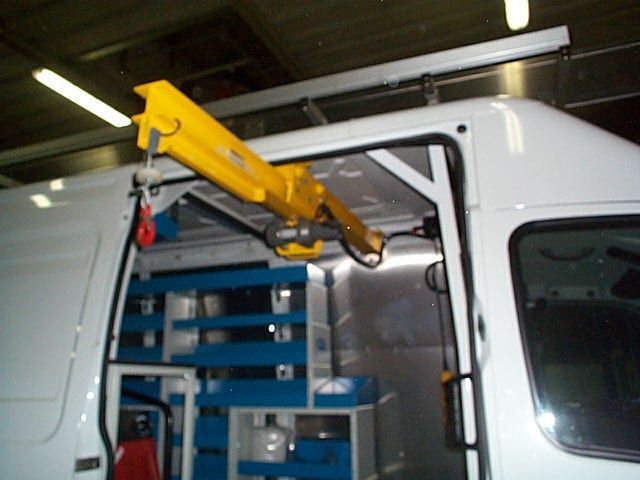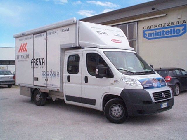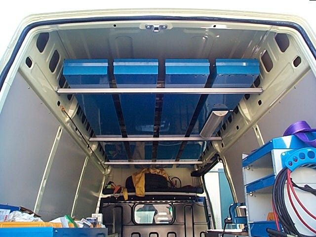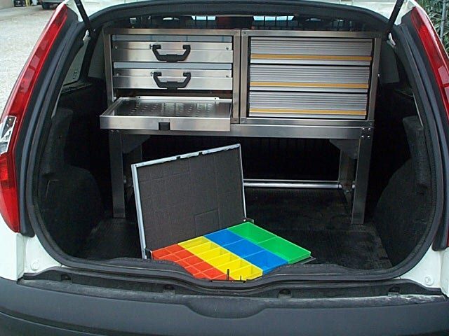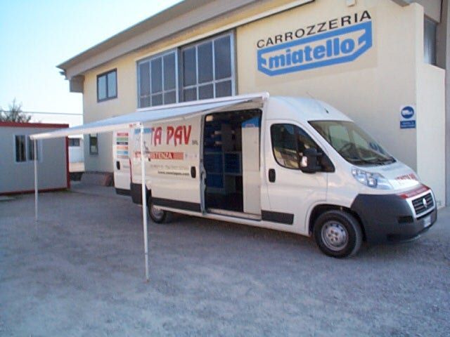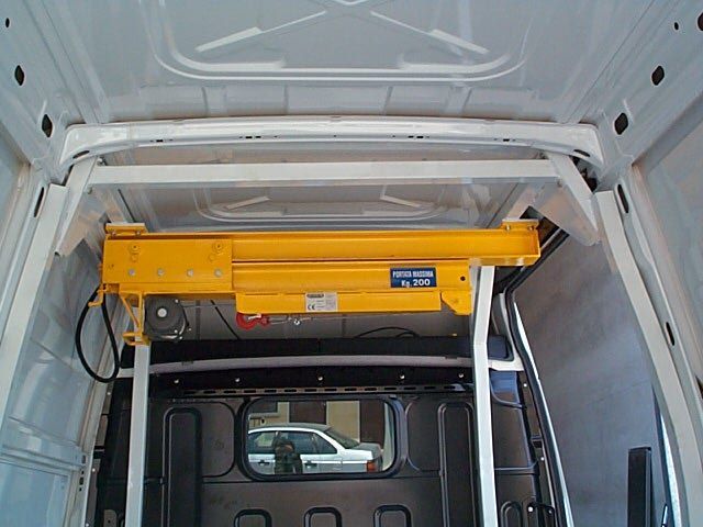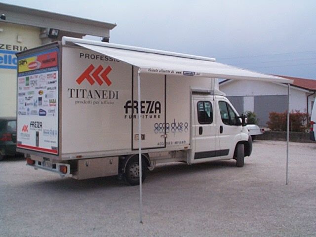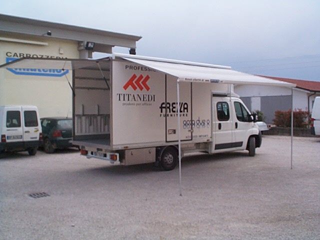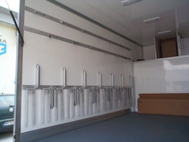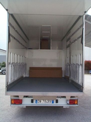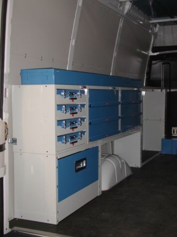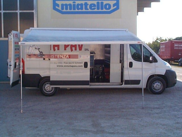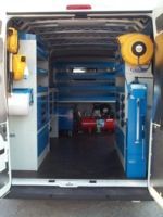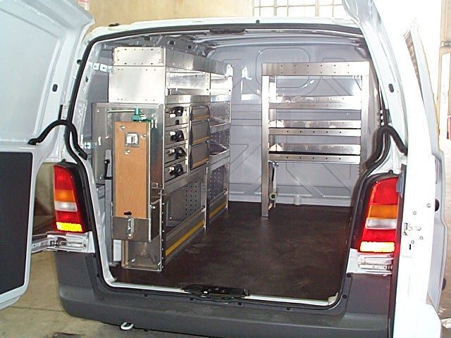 Il furgone è dotato di scaffalature modulari collocate internamente, banco di lavoro con attrezzature dedicate, vani con eventuale chiusura a serranda in alluminio e cassetti porta attrezzi.